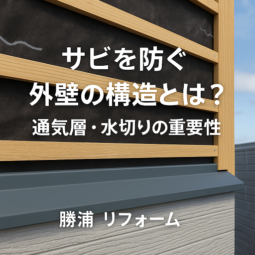 今回は、勝浦 リフォームの視点から、サビや劣化を防ぐための外壁構造(通気層・水切り・防水紙)の役割とポイントを解説します。