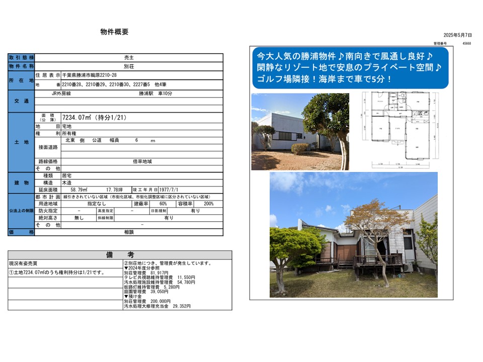 以前よりご案内しています勝浦東急にある別荘物件について500万円でご案内していましたが大幅に値下げします。 なんと250万円で購入可能です。 南向きの日当たりが良く海が見える物件としてはかなりお買い得です! ぜひお問い合わせをどうぞ。 -